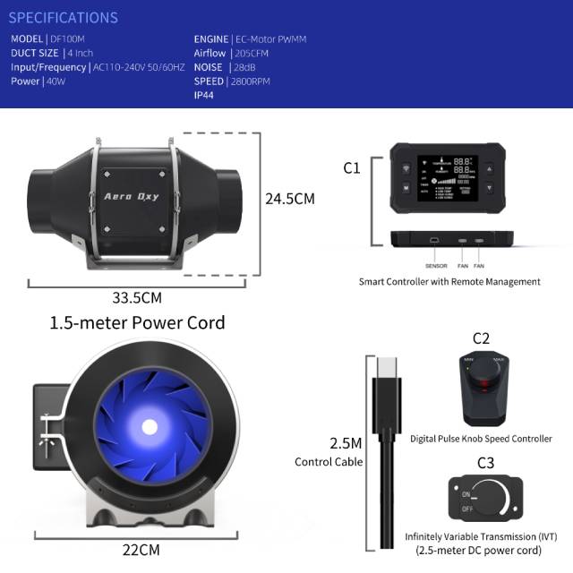 Με βελτιστοποιημένη αεροδυναμική σχεδίαση και πτερύγια χαμηλού θορύβου, εξασφαλίζει ήσυχη λειτουργία — ιδανική για κατοικίες, γραφεία, grow tents και συστήματα HVAC.