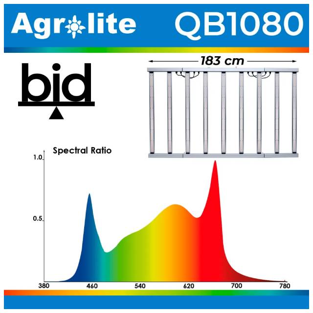 Η Agrolite παρουσιάζει το QB1080, ένα φωτιστικό υψηλής απόδοσης με 9 ράβδους τεχνολογίας BID (Balanced Impact Distribution). Είναι ειδικά σχεδιασμένο για θαλάμους εώς 2,40x1,20m. Μπορεί επίσης να χρησιμοποιηθεί για καλλιέργιες με δίσκους σποράς και tray 1,20x1,20 x 2 τεμάχια, όπως και ράφια σε καλλιέργειες microgreens.