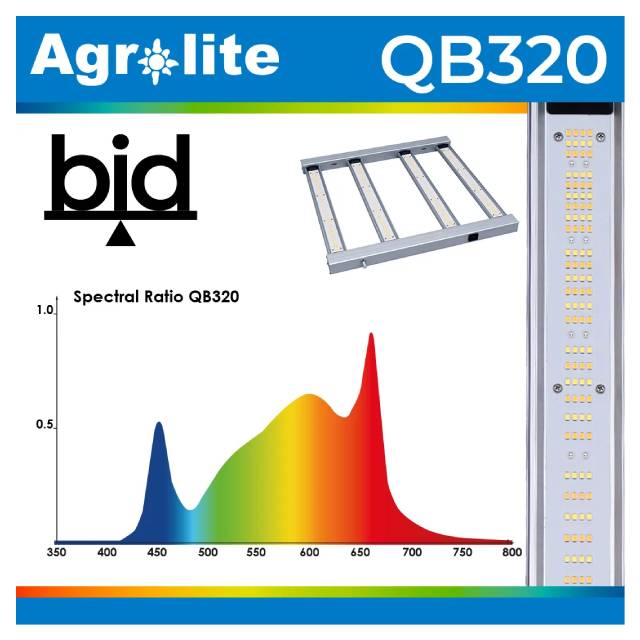 Αναβαθμίστε την απόδοση της καλλιέργειάς σας με το QB320 bid της Agrolite, ένα φωτιστικό LED σχεδιασμένο για άψογη κάλυψη σε χώρους έως 80 × 80 cm.