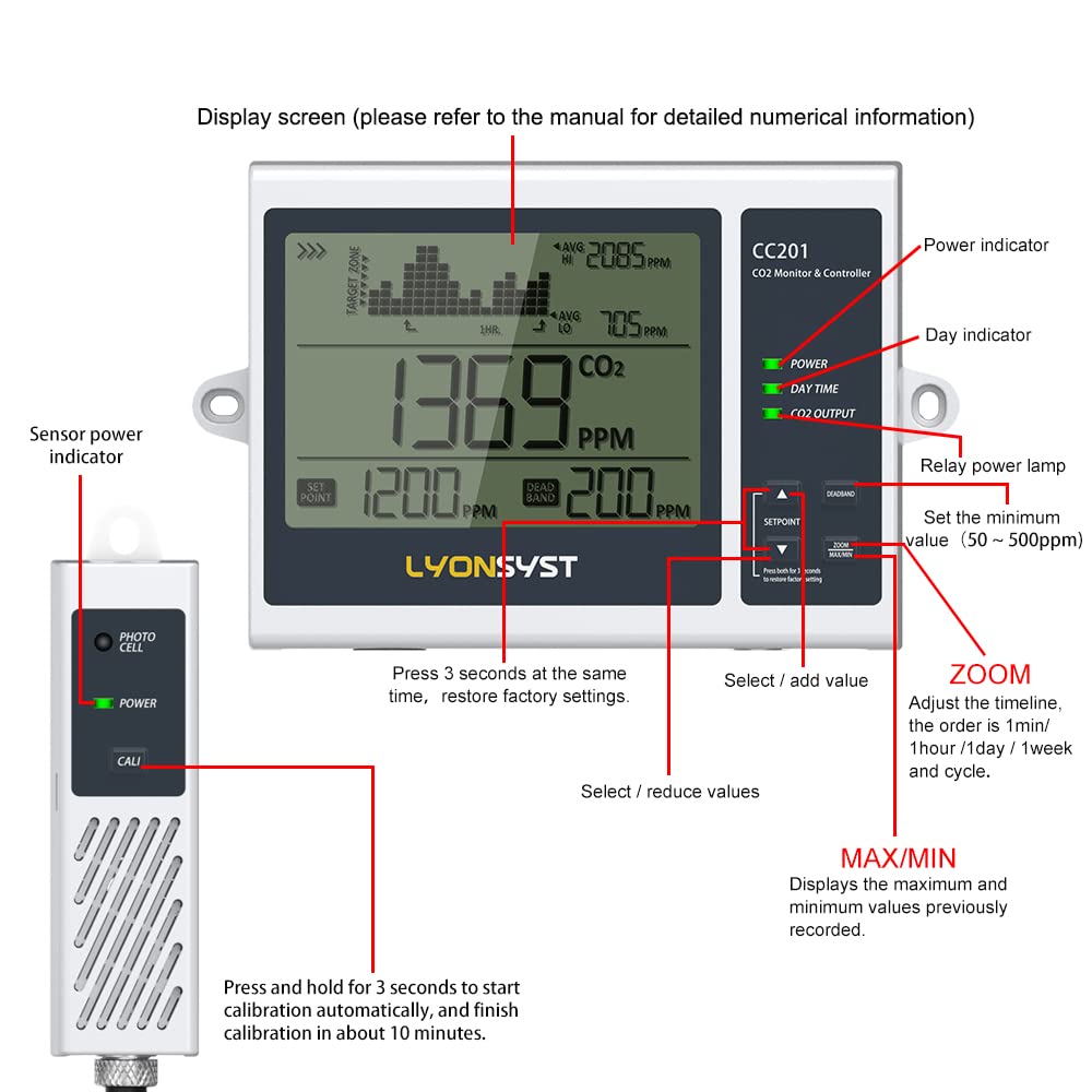 Επιτρέπει εύκολη παρακολούθηση και ρύθμιση των επιπέδων CO2 στο χώρο καλλιέργειάς σας.
