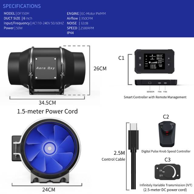 Με βελτιστοποιημένη αεροδυναμική σχεδίαση και πτερύγια χαμηλού θορύβου, εξασφαλίζει ήσυχη λειτουργία — ιδανική για κατοικίες, γραφεία, grow tents και συστήματα HVAC.