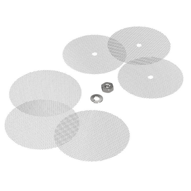 Σετ 3 άνω και 3 κάτω κανονικών σιτών από ανοξείδωτο ατσάλι που θα χρησιμοποιηθούν στο κάτω μέρος του Filling Chamber του SOLID VALVE και για το SOLID VALVE Filling Chamber Insert, συμπεριλαμβανομένου ενός επιπλέον παξιμαδιού και ροδέλας.