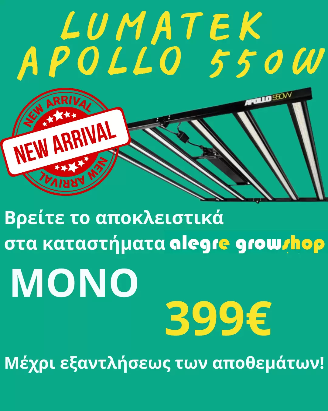 Το Alegre growshop είναι μια καινοτόμα επιχείρηση που εστιάζει στις εναλλακτικές καλλιέργειες στην Ελλάδα, από το 2004. Με ένα μεγάλο δίκτυο καταστημάτων και με απόλυτα εξειδικευμένο προσωπικό, παρέχουμε υπηρεσίες και αναλώσιμα, ώστε να εξασφαλίζεται πάντα μια εξαιρετικά επιτυχημένη παραγωγή. Η εμπιστοσύνη και η συνέπεια, μας έχει αναδείξει ως ένα από τα καλύτερα growshops στην Ευρώπη, που έχει σαν αποτέλεσμα το Alegre να είναι ο μεγαλύτερος διανομέας στα Βαλκάνια. 21 χρόνια καλλιεργούμε με σεβασμό στη φύση και τον άνθρωπο!